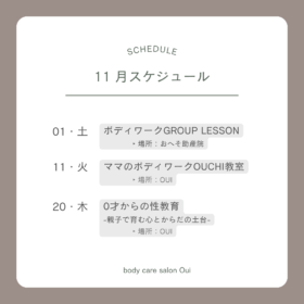 🌿 2025年11月のイベントご案内 いつもOuiをご利用いただきありがとうございます。11月もママの心とからだを整えるイベントを開催…