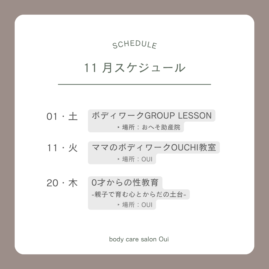 11月もママの心とからだを整えるイベントを開催いたします♩