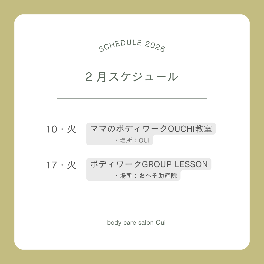 2月も、産後ママのためのボディワークレッスンを開催いたします♩